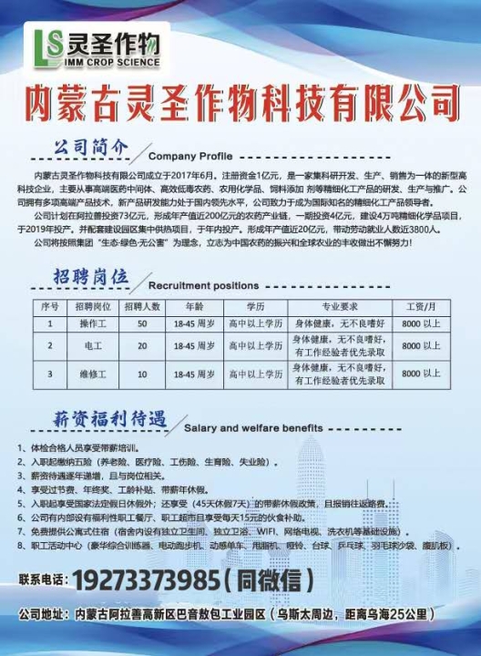 元氏诚信集团内蒙古分公司急招!操作工,电工,维修工,仪表工,叉车司机,...
